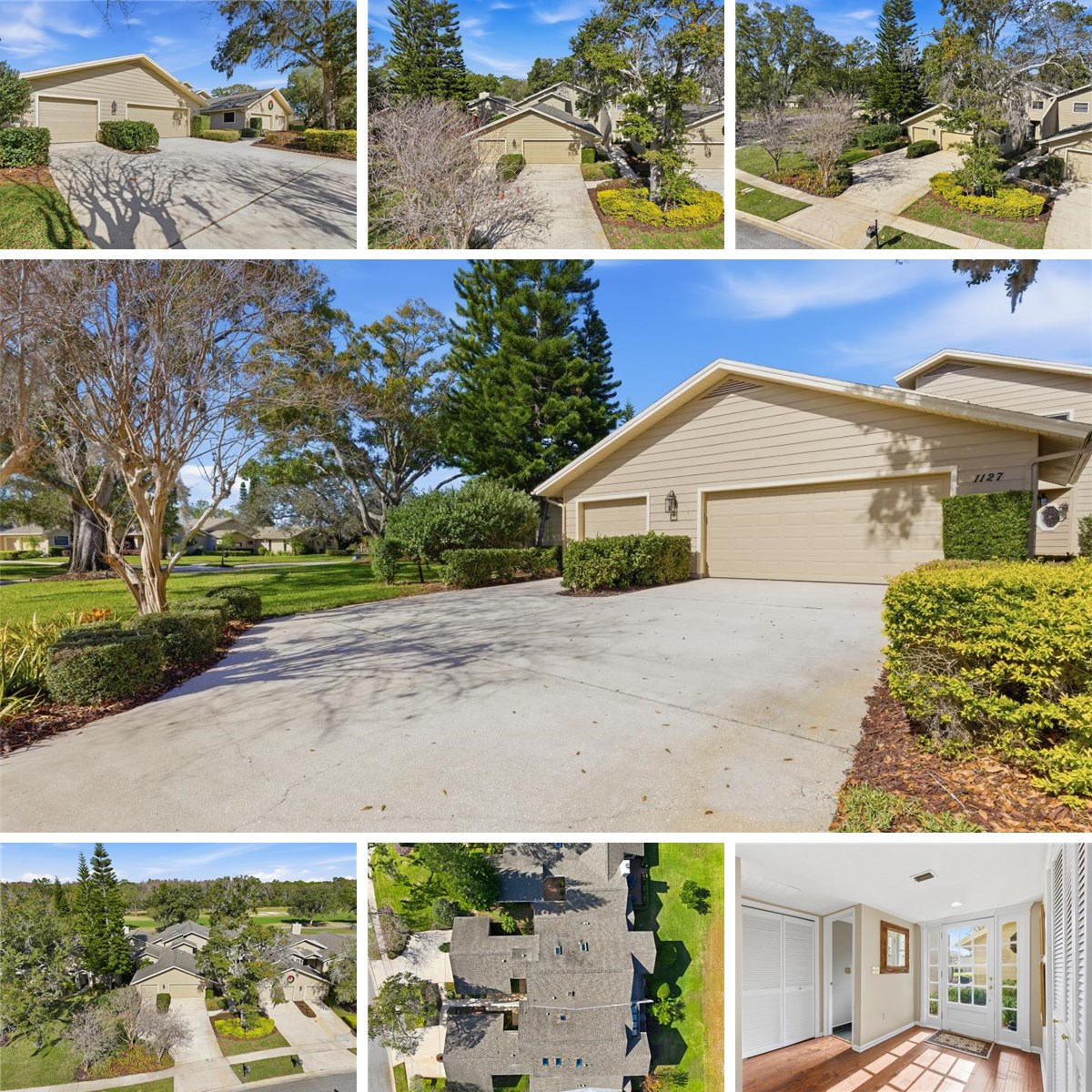 This elegant 2-bedroom, 2.5-bath residence features a 2-car garage plus a dedicated golf cart garage. Enter through a dramatic foyer that opens to a soaring two-story ceiling in the living room, complemented by both formal and casual dining areas and a spacious, well-appointed kitchen.